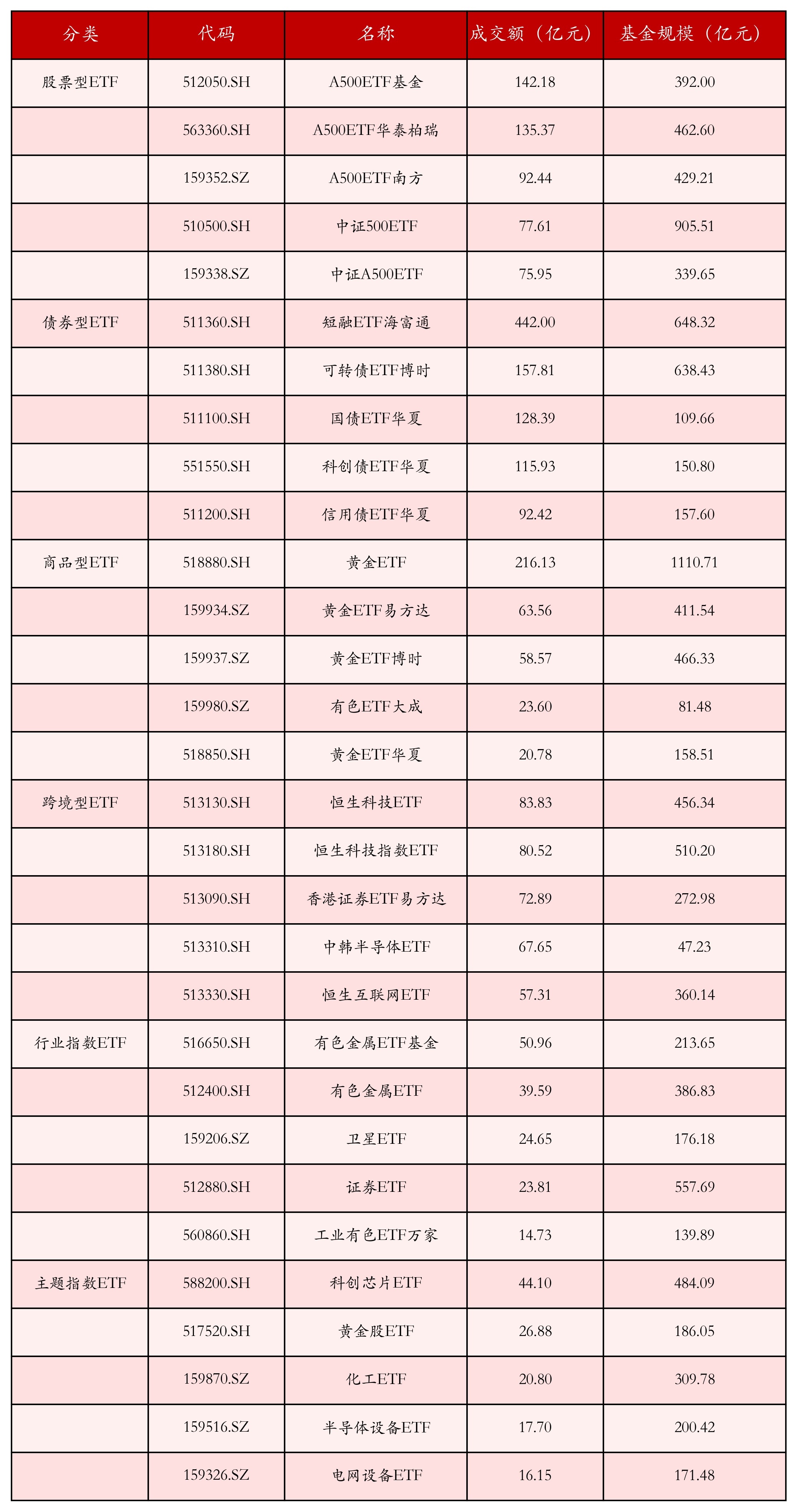 3.不同类别ETF成交情况